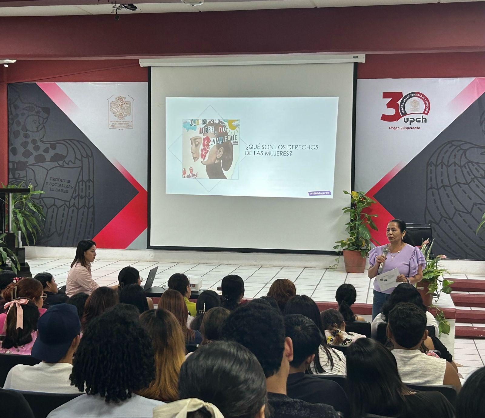 El Departamento de Capacitación de la Subdirección de Psicología y Salud Integral del Instituto en colaboración con Universidad Popular de la Chontalpa UPCH.MX llevo a cabo la Conferencia “Los Retos en el Ejercicio de los Derechos de las Mujeres”. Dirigida a estudiantes de la carrera de Psicología de esta casa de estudios, la cual tuvo por objetivo: reflexionar con las y los estudiantes sobre los desafíos que enfrentan las mujeres en el ejercicio de sus derechos humanos en diferentes contextos, así como promover el respeto y la defensa de sus derechos. Agradecemos a la Universidad Popular de la Chontalpa por la articulación para acciones que promocionan los derechos humanos de las mujeres en el Estado de Tabasco.