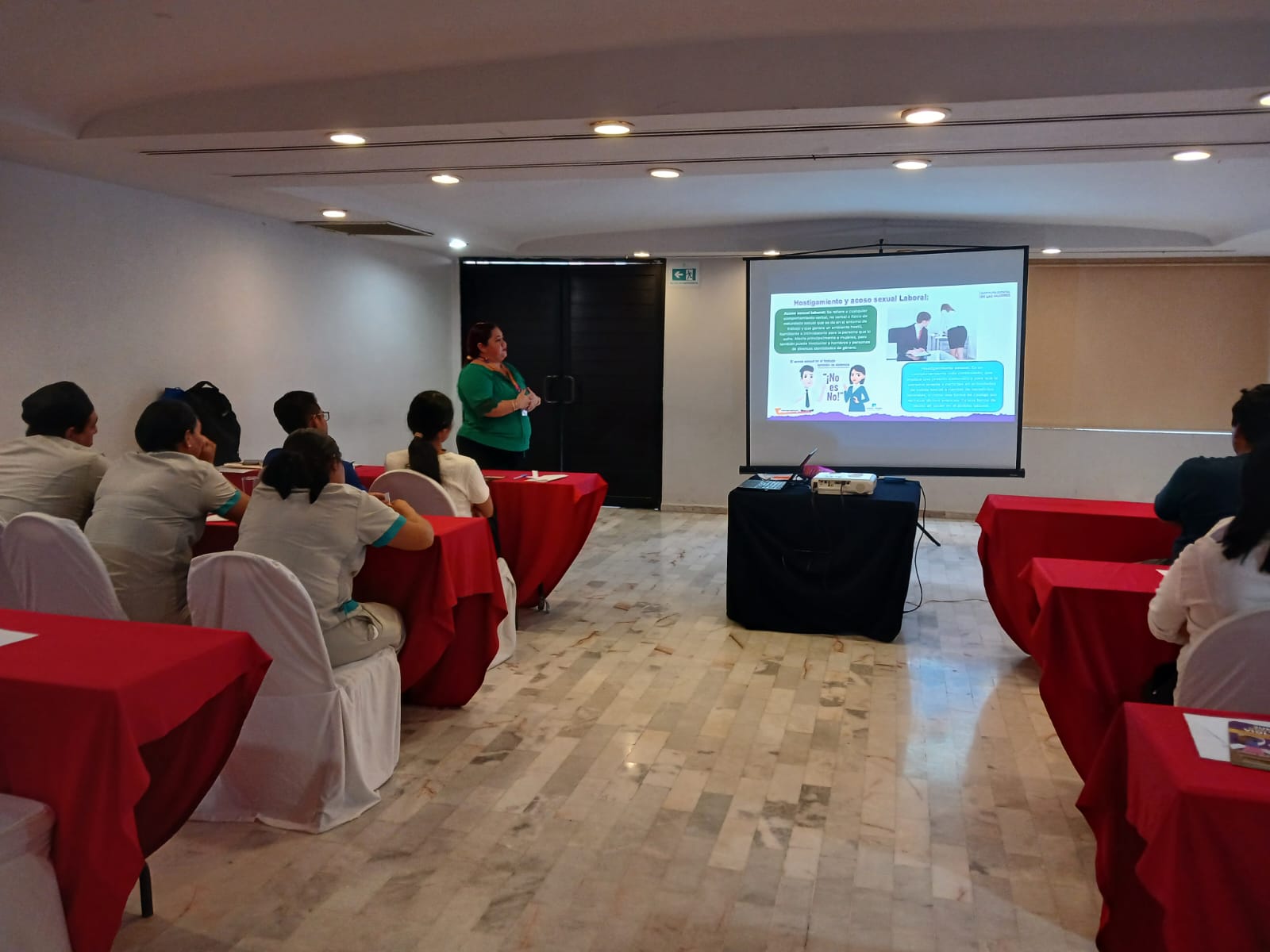 El Departamento de Capacitación de la Subdirección de Psicología y Salud Integral realizó el día de hoy la capacitación “Acoso Y Hostigamiento Sexual Laboral”, dirigida al personal del grupo OLMECA. Esta tuvo por objetivo concientizar frente a esta problemática dando a conocer sus afectaciones en el ámbito de la salud mental y en lo laboral, así mismo se brindó orientación sobre los servicios que brinda el IEM para la defensa y protección de los Derechos Humanos de las Mujeres, Niñas y Adolescentes.