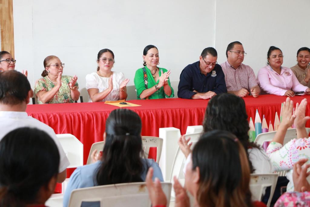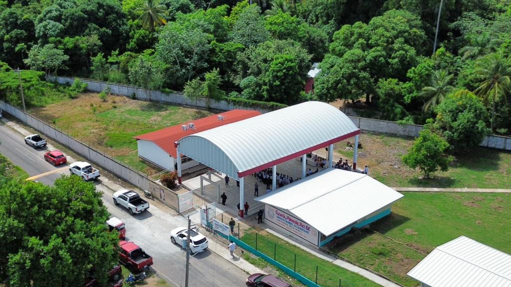 Durante el recorrido, la secretaria constató la construcción de un aula didáctica en el Centro Preescolar Indígena “Carlos Pellicer Cámara”, espacio que beneficiará directamente a la primera infancia y permitirá aplicar los principios de la Nueva Escuela Mexicana, fomentando una enseñanza integral, comunitaria y centrada en valores como la justicia social y el respeto a la diversidad cultural. Asimismo, visitó la Escuela Secundaria Técnica No. 4, donde verificó la construcción del nuevo domo que cubrirá la cancha principal, permitiendo a los estudiantes realizar actividades deportivas, cívicas y culturales en condiciones más seguras y cómodas, fortaleciendo su bienestar y desarrollo integral.