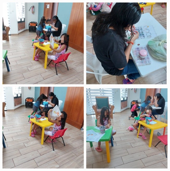 El área de Trabajo social en apoyo con la IEM mujer realizaron actividades para reforzar el conocimiento pedagógico y mejorar hábitos de estudio. Así como se trabajó con la IEM mujer arte terapia como terapia ocupacional.