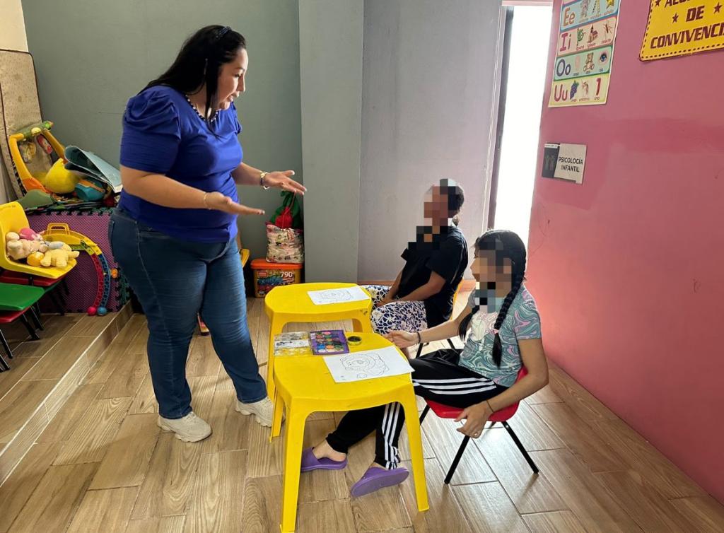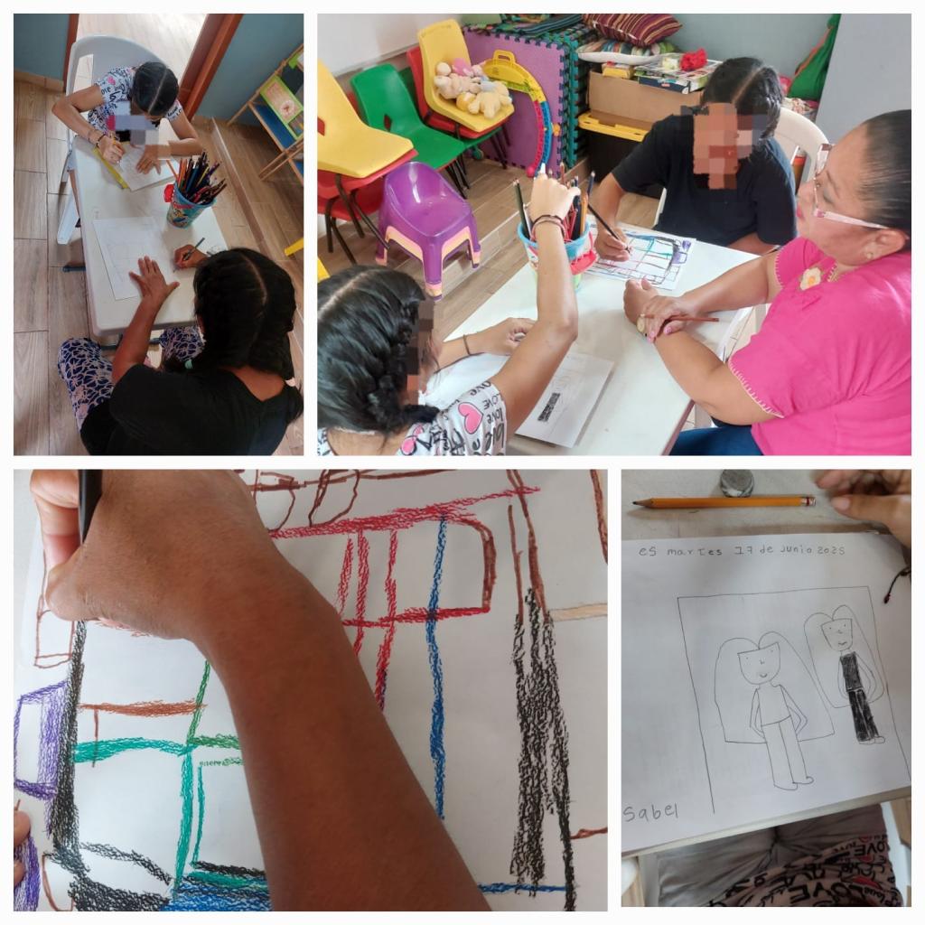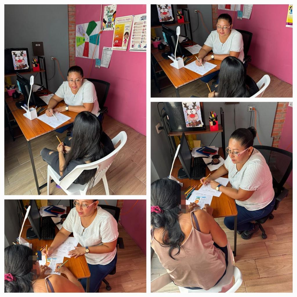 Las fotografías registran momentos significativos del trabajo realizado por las profesionistas del centro, quienes brindaron atención psicológica, asesoría jurídica y acompañamiento social, de manera empática y profesional. Asimismo, se brindó atención adecuada a las hijas e hijos de las usuarias, asegurando espacios de contención y cuidado en todo momento.