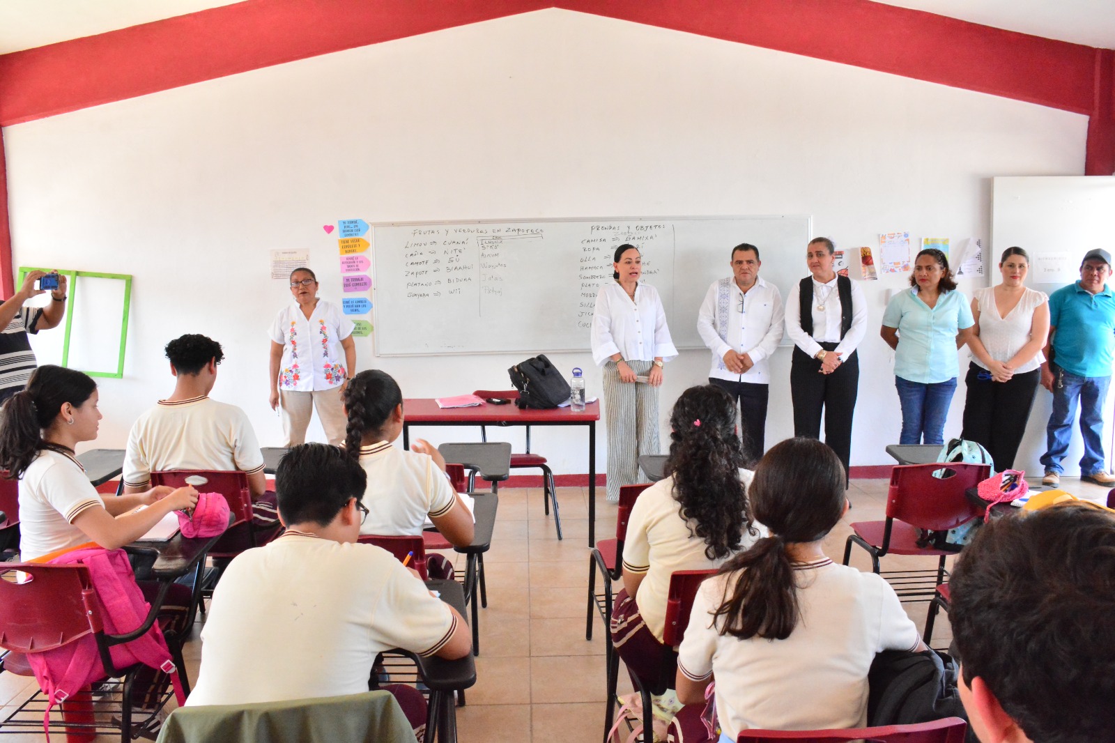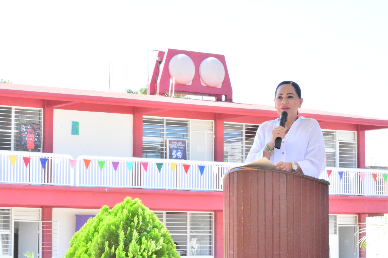 Acompañada de Amalia Lutzow Alvarado, titular del Departamento de Secundarias Generales Estatales, Iparrea Sánchez exhortó a las alumnas y alumnos a sentirse orgullosos de pertenecer a la matrícula de una escuela con 60 años de historia y que ha sido testigo del desarrollo de generaciones enteras.