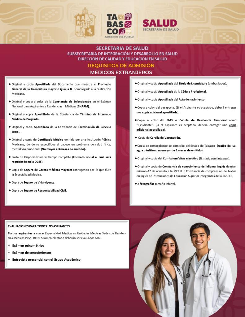 REQUISITOS DE INGRESO DE ESPECIALIDADES MÉDICAS 2026 (EXTRANJEROS)