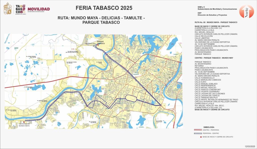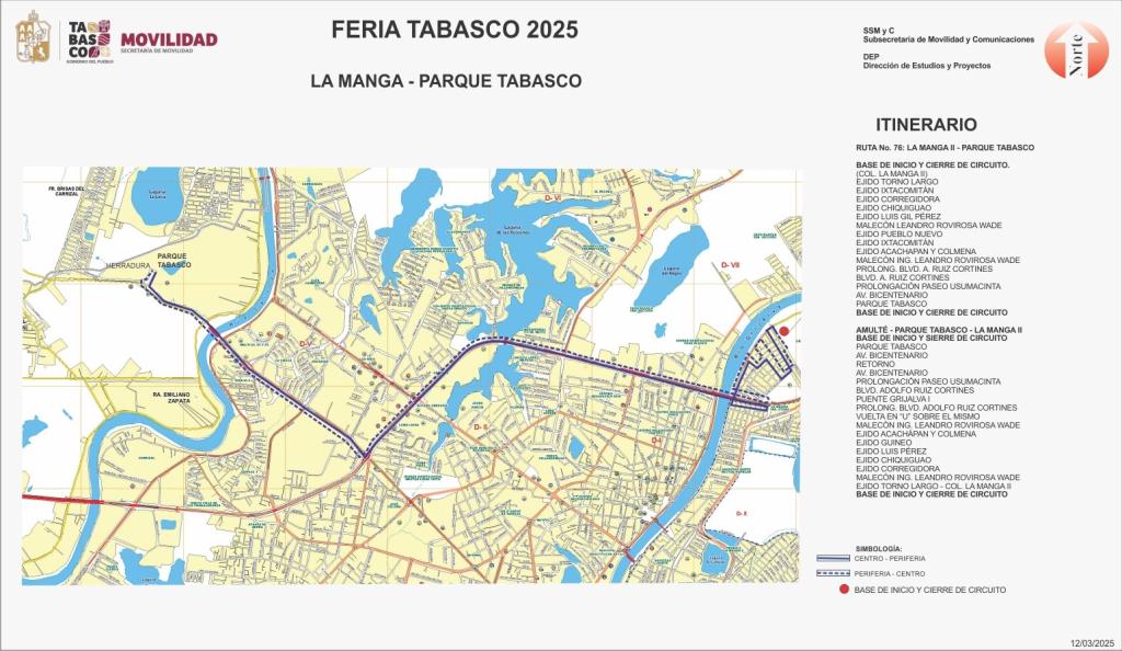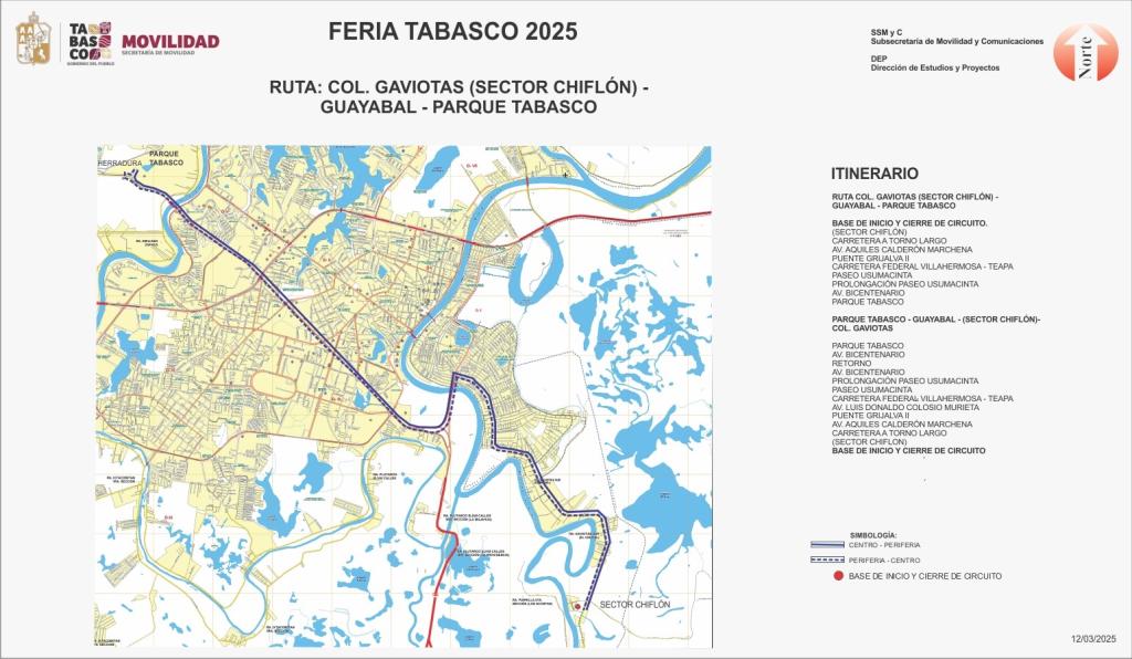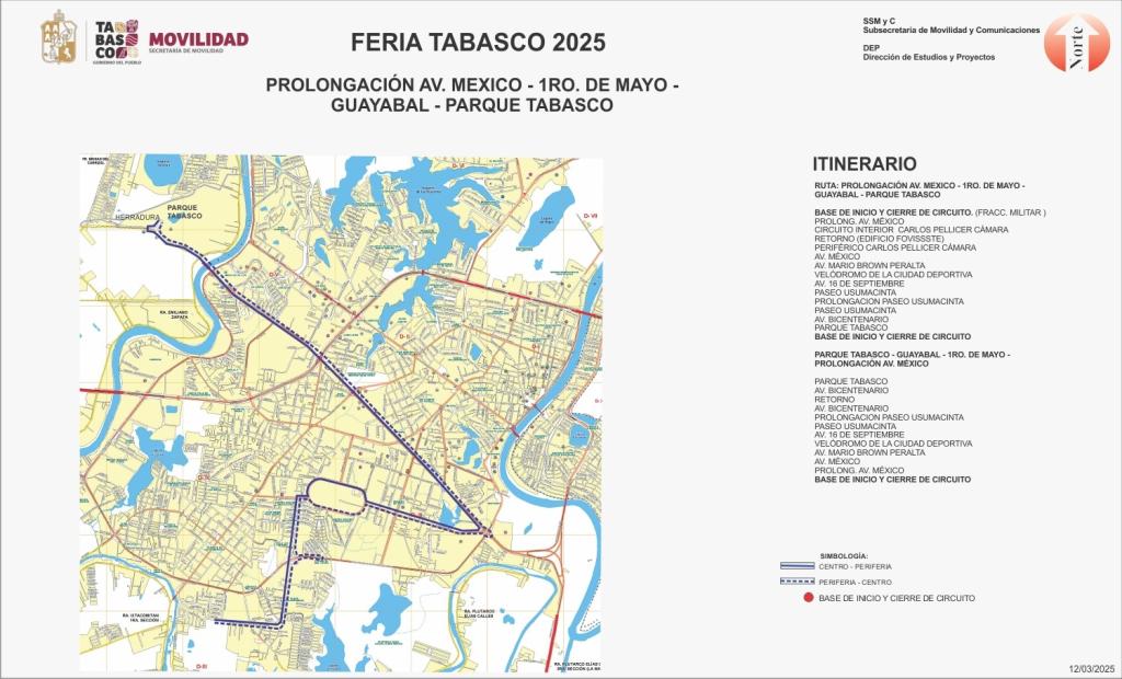 RUTA PROLONGACIÓN AV MÉXICO-1ro DE MAYO-GUAYABAL-PARQUE TABASCO