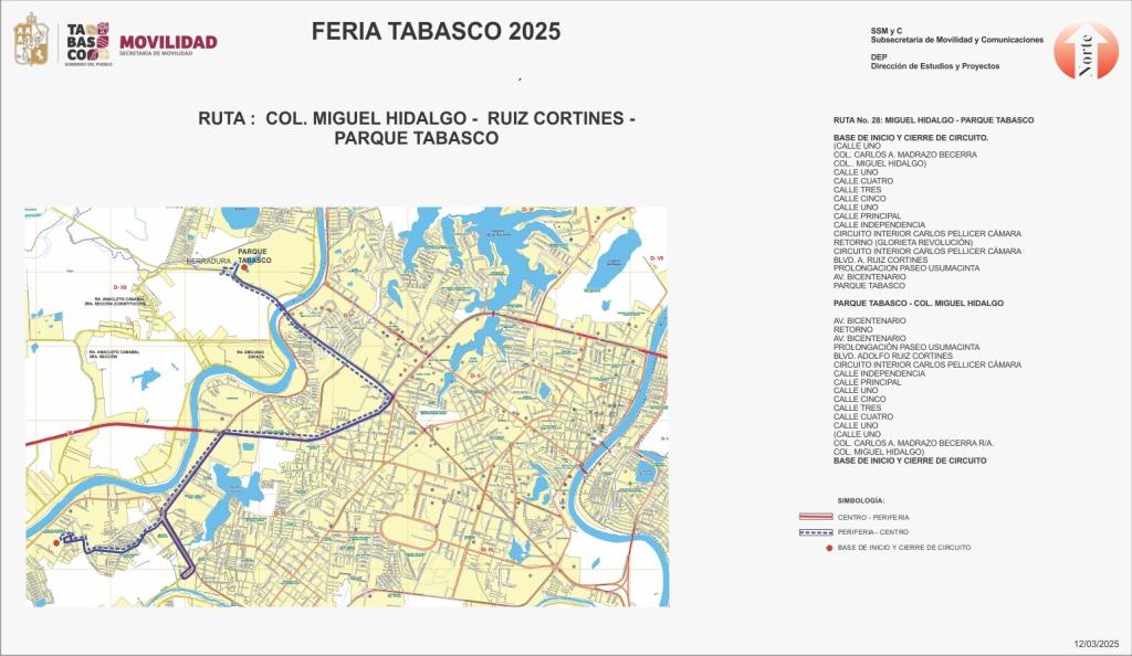 RUTA COL MIGUEL HIDALGO-RUIZ CORTINEZ-PARQUE TABASCO