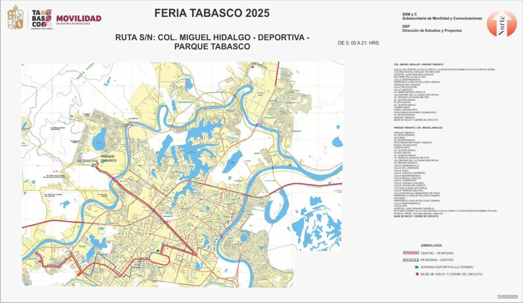 RUTA COL. MIGUEL HIDALGO-DEPORTIVA-PARQUE TABASCO