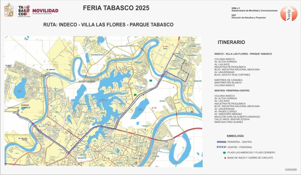 RUTA INDECO-VILLA LAS FLORES-PARQUE TABASCO