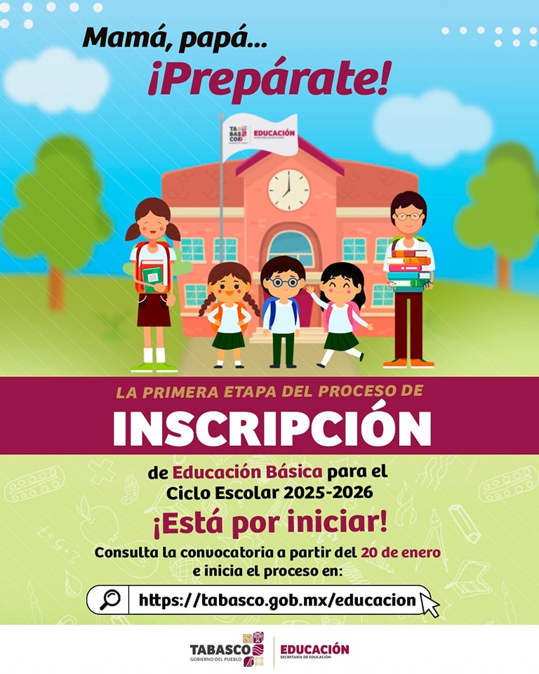 La Secretaría de Educación del Estado de Tabasco (SETAB) espera el registro de casi 140 mil niñas, niños y adolescentes durante el proceso de inscripción en educación básica para el ciclo escolar 2025-2026.