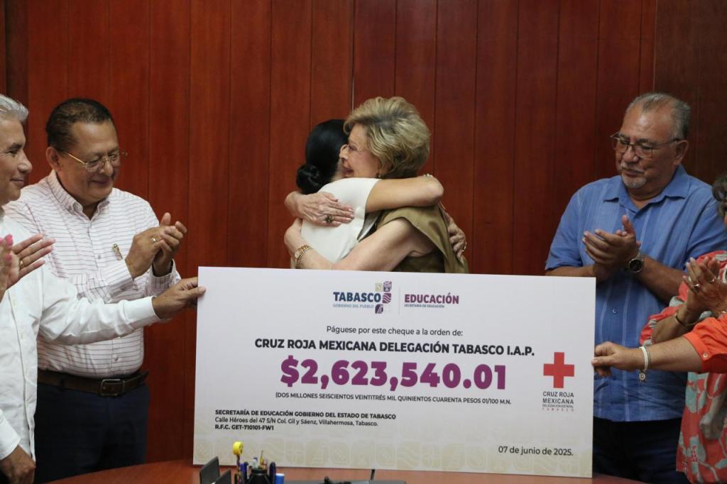 Maestras, maestros, estudiantes, directivos escolares, personal administrativo y de apoyo a la educación, lograron durante la Colecta Escolar 2025 de la Cruz Roja Mexicana la recaudación de más de 2 millones 600 mil pesos, los cuales fueron entregados a la benemérita institución por la secretaria de Educación, Patricia Iparrea Sánchez.