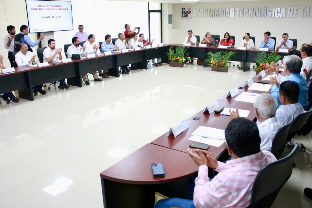 En la Sala “ANFECA” de la Universidad Tecnológica de Tabasco (UTTAB) se llevó a cabo la firma del Convenio General de Colaboración entre la Secretaría de Educación del Estado de Tabasco (SETAB) y la Secretaría de Medio Ambiente y Desarrollo Sostenible (SEMADES), con la participación de 15 instituciones educativas públicas de Educación Media Superior y Superior, así como del Instituto de Formación para el Trabajo del Estado de Tabasco (IFORTAB), el Consejo de Ciencia y Tecnología del Estado de Tabasco (CCYTET) y el Instituto de Educación para Adultos de Tabasco (IEAT).