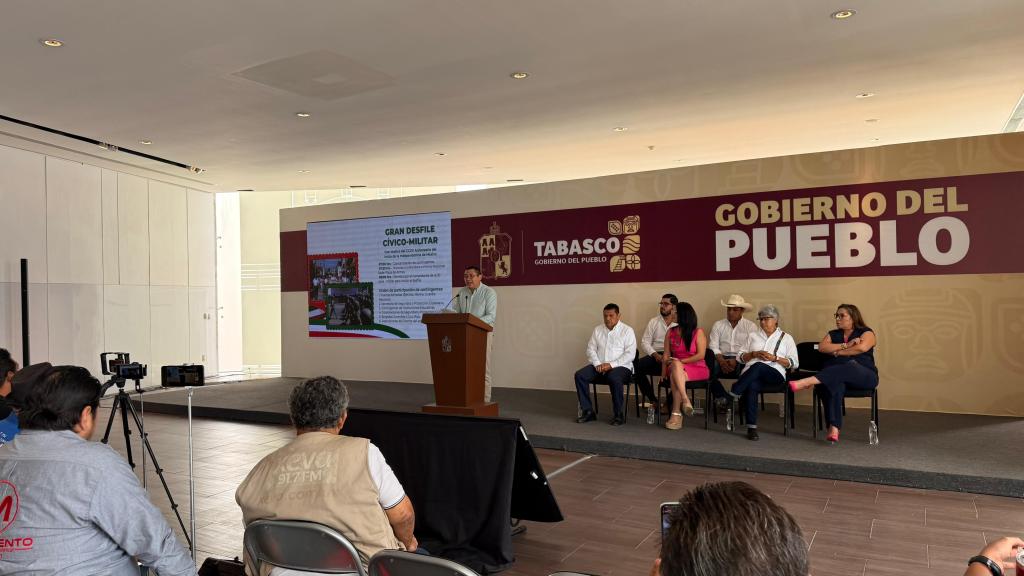 En representación de Patricia Iparrea Sánchez, titular de la SETAB, el subsecretario de Educación, Gonzalo Mario Martínez Gómez, durante la conferencia de prensa matutina encabezada por el Gobernador Javier May Rodríguez, compartió los detalles de este evento considerado una de las conmemoraciones cívicas más importantes del año.