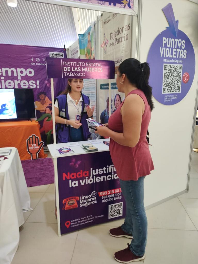 En el marco de la Expo Mujeres que Inspiran, realizada en el Gran Salón Villahermosa y organizada por el H. Ayuntamiento de Centro, se instaló el módulo de Líneas Mujeres Seguras.