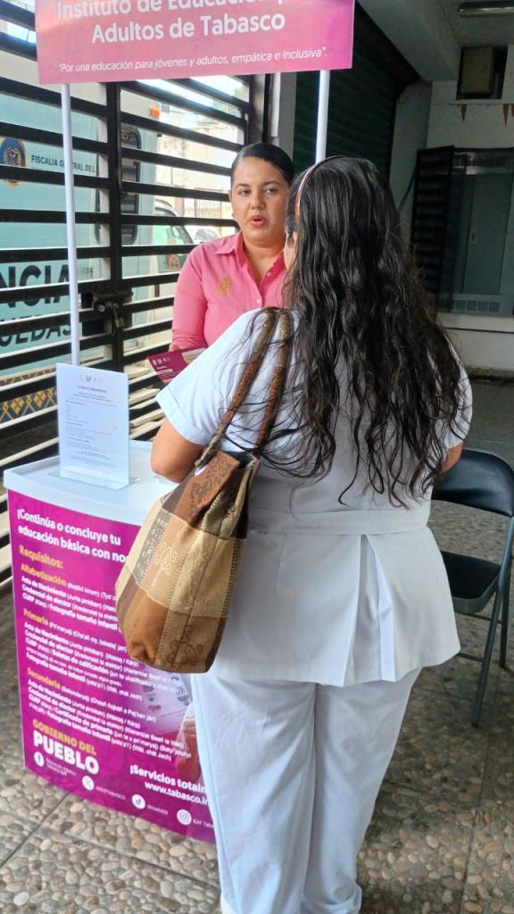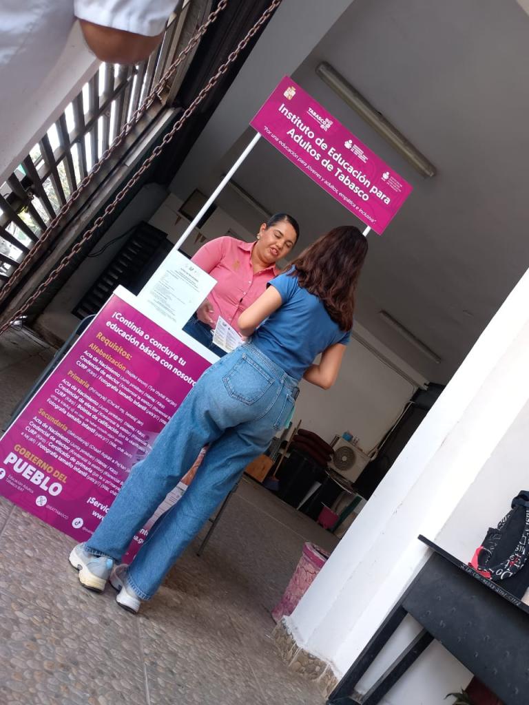El Instituto Estatal de las Mujeres, a través de la Unidad de Apoyo Operativo y en colaboración con el Instituto de Educación para Adultos de Tabasco (IEAT), instalo un módulo Informativo en este Instituto el cual tiene como finalidad fortalecer las acciones coordinadas entre ambas dependencias, encaminadas a contribuir en la disminución del rezago educativo de las mujeres en nuestro estado, mediante la implementación de planes y estrategias que les posibiliten concluir sus estudios de educación básica y media superior.
