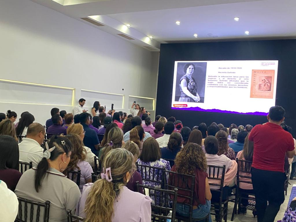 El Instituto Estatal de las Mujeres, a través de la Unidad de Apoyo Operativo y en el marco de la transmisión del cortometraje “Mujeres del Mar”, llevó a cabo la conferencia “Lucha Feminista”, impartida por la Lcda. Ana Ysabel Ramón de la Cruz, Jefa del Departamento de Enlace Municipal de la Subdirección de Fortalecimiento Territorial, en la que se abordó la historia de la lucha de las mujeres por el reconocimiento y la igualdad de sus derechos, así como los avances y desafíos que aún persisten en la construcción de una sociedad más justa e igualitaria.