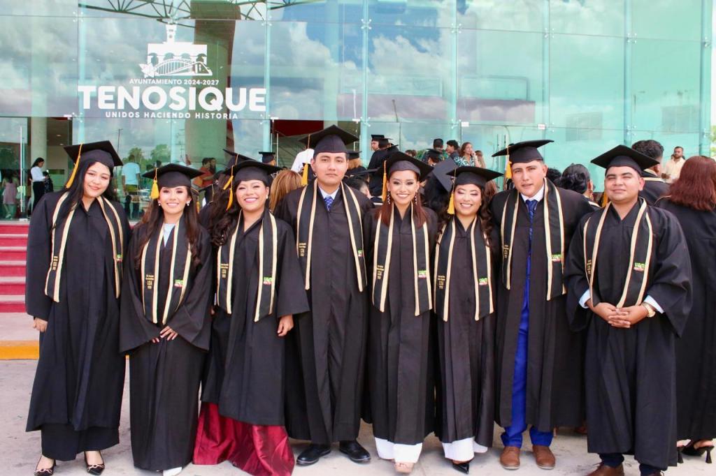 El evento se llevó a cabo en el Centro de Convenciones de Tenosique, marco que dio realce a la celebración del logro académico de quienes concluyeron sus estudios en las licenciaturas en Comercio Internacional y Aduanas, Gestión y Desarrollo Turístico, así como en las ingenierías en Petrolera, Información e Innovación Digital, y Manejo de Recursos Naturales.